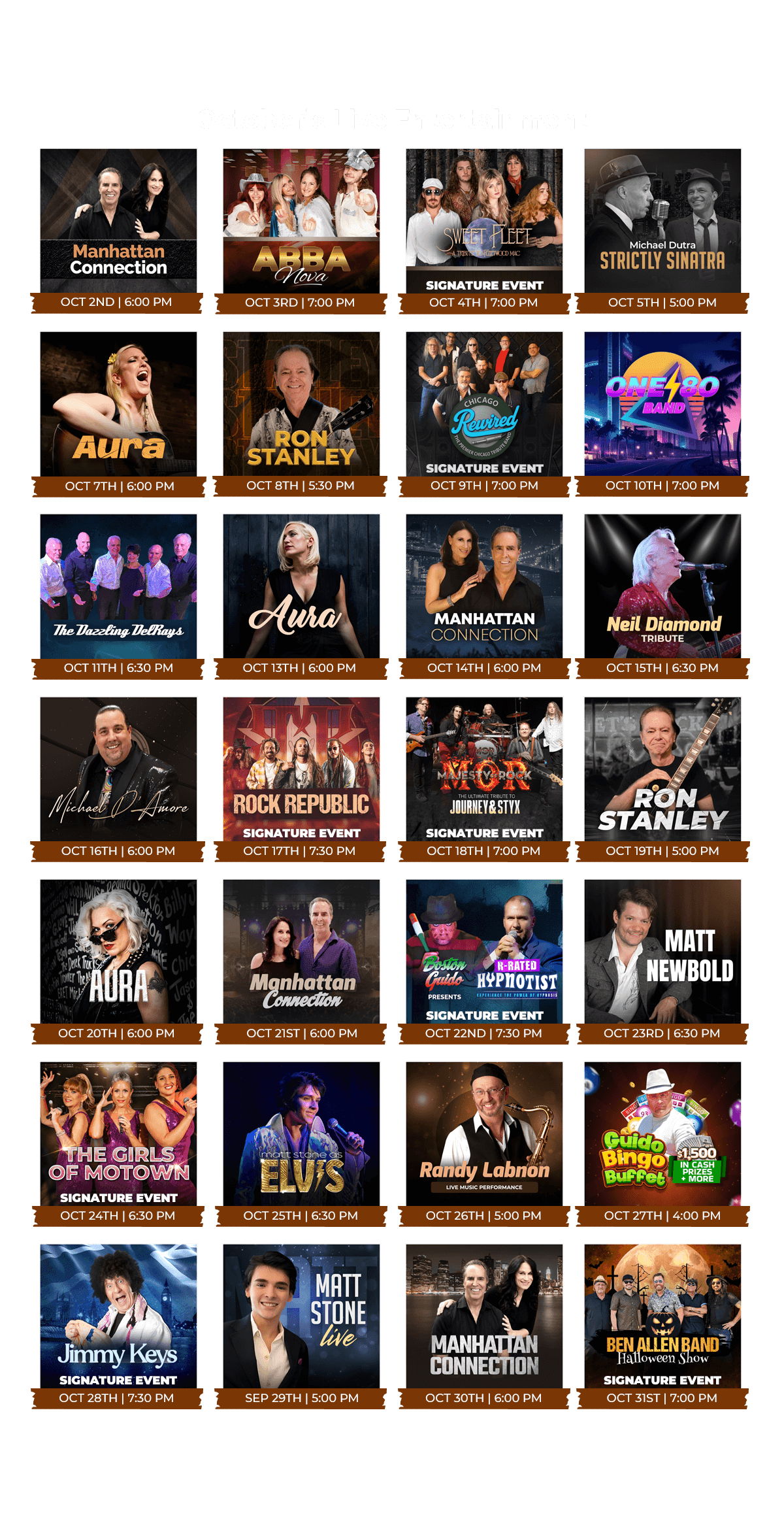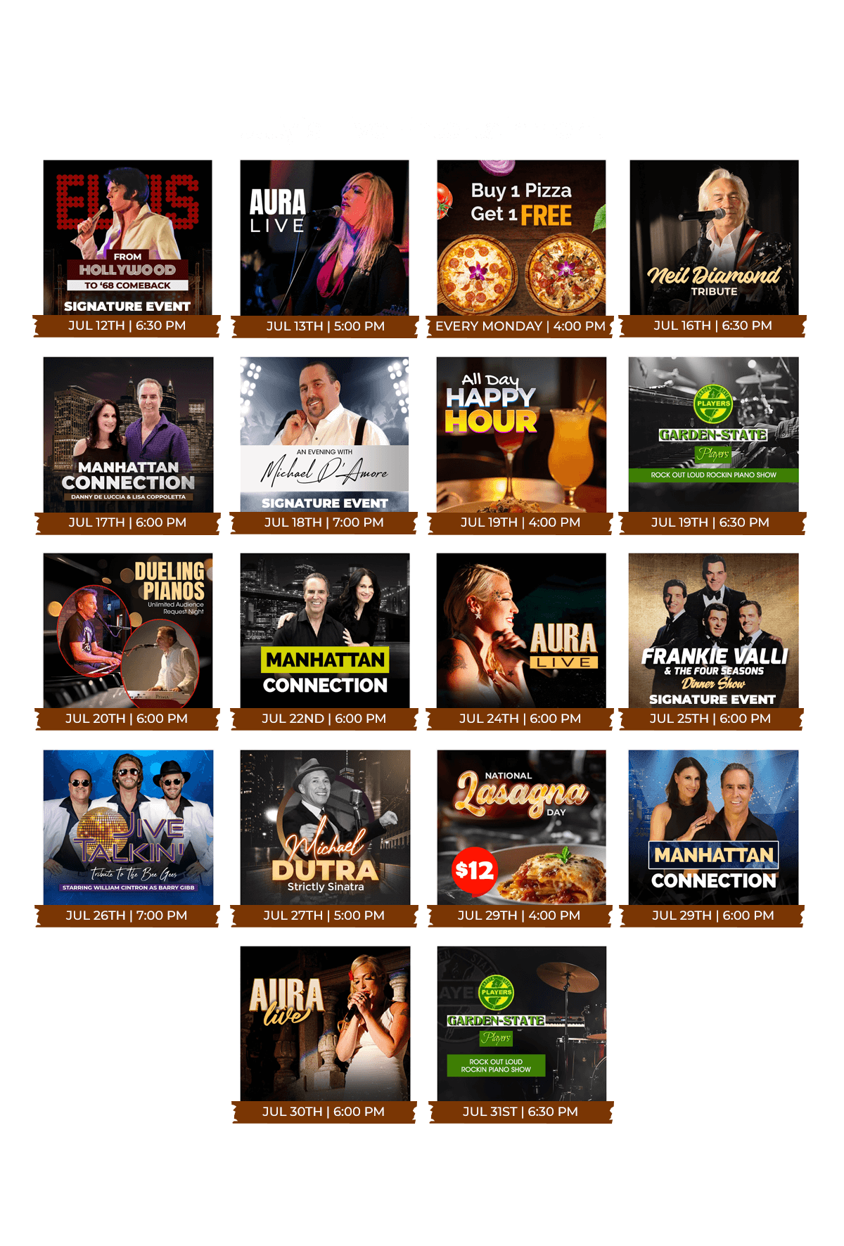 Fun and friendly happenings every week! Live entertainment twice a week, Latin Night, BOGO, Holiday Parties, and more.