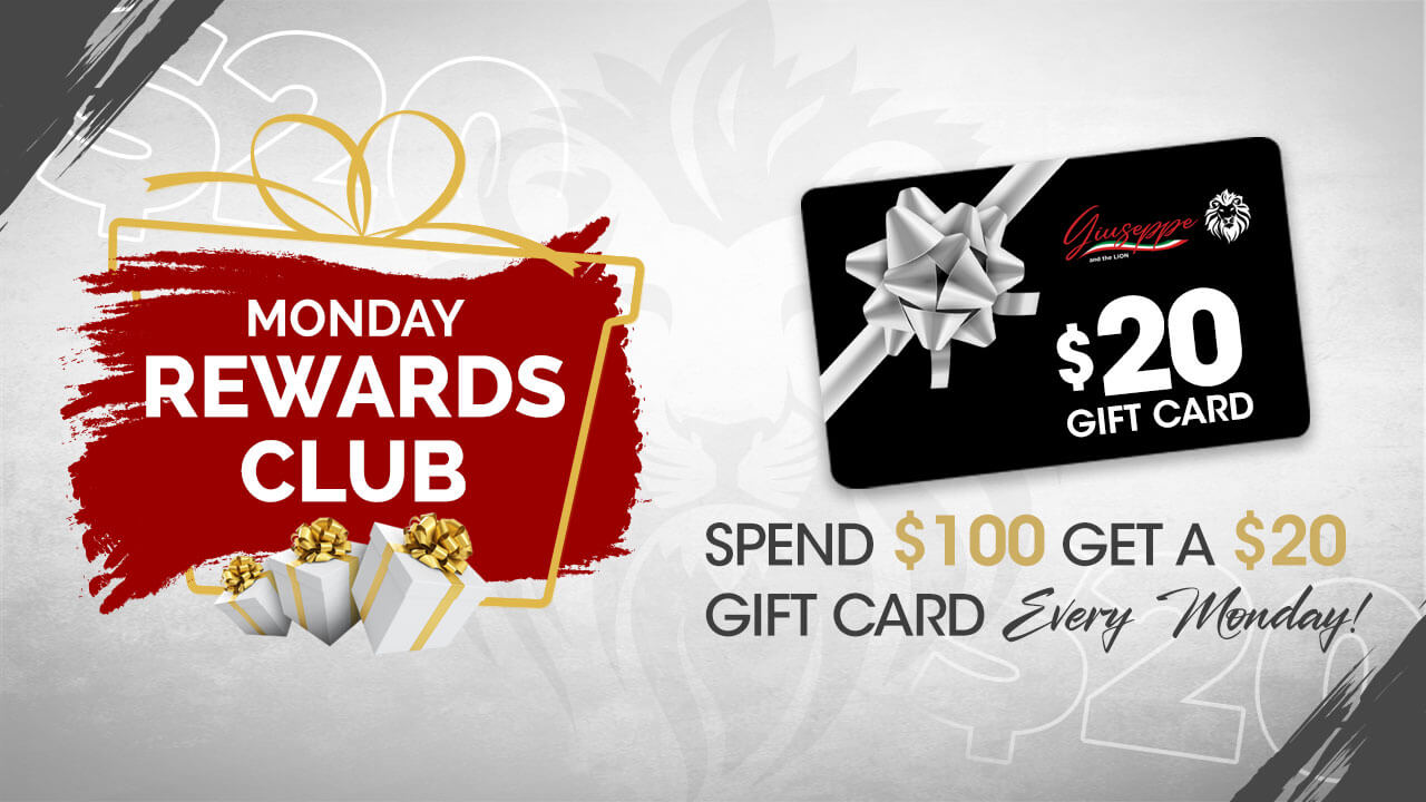 When you spend $100 or more on any menu items (before tax and tip), you’ll receive a $20 gift card to enjoy on your next visit.